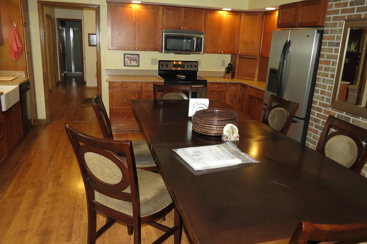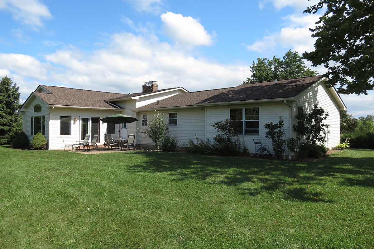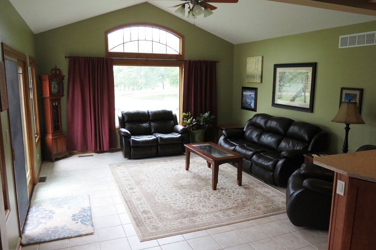 10± acres, home, pole barn, shop building, fenced pastures, and pond. The impressive interior of the home boasts 4 bedrooms and 3 full baths. The master suite is 16â??x16â?? with a large walk-in closet. The master bath has a double sink and a large custom shower. The 22â??x14â?? eat-in kitchen has custom cabinets, granite counter tops, and a brick-front raised fireplace. The large main level also includes the 20â??x14â?? living room with fireplace, 18â??x16â?? family room, 14â??x12â?? office area, mud room, and laundry room. This spacious main level floor plan is ideal for the family as well as entertaining. The full basement is partially finished, and the 2-car attached garage includes a large storage area. Other amenities within the home include a Lennox LP gas forced-air furnace, central air, Pella windows, a newer roof, cathedral ceilings, ceramic tile and wood flooring, ceiling fans, and a Radionon system. The exterior is beautifully landscaped with mature trees, colorful perennials, a small orchard and grape vineyard, a large play area, and a ½ acre stocked pond. The 60â??x50â?? pole barn with walk-in door and 14â??-high end slider includes grooved concrete, maternity pens, custom Gingway gates, a working chute, and 4 individual turn-out pens. There are 6 fenced and cross-fenced pasture areas, each with its own Ritchie waterer. The 34â??x32â?? shop building has a concrete floor, porch, and walk-in and overhead doors.